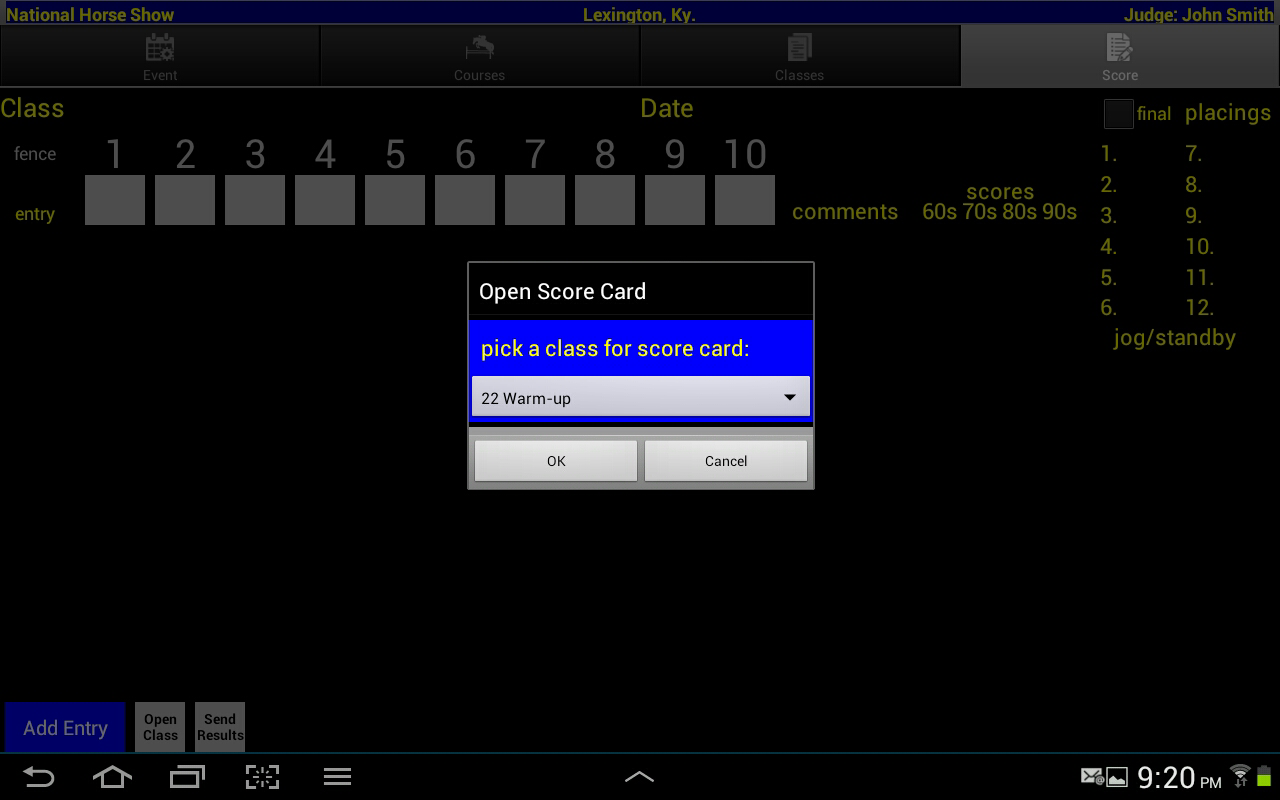 Touch "OK" to open the class displayed or you can select a class that you want to open from the drop down list and then touch